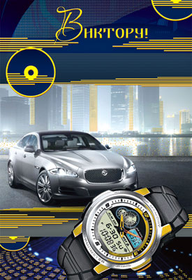 ЦИ-6705 Открытка среднего формата Виктору! Мужская. Текст (конгревное тиснение,золотая фольга)