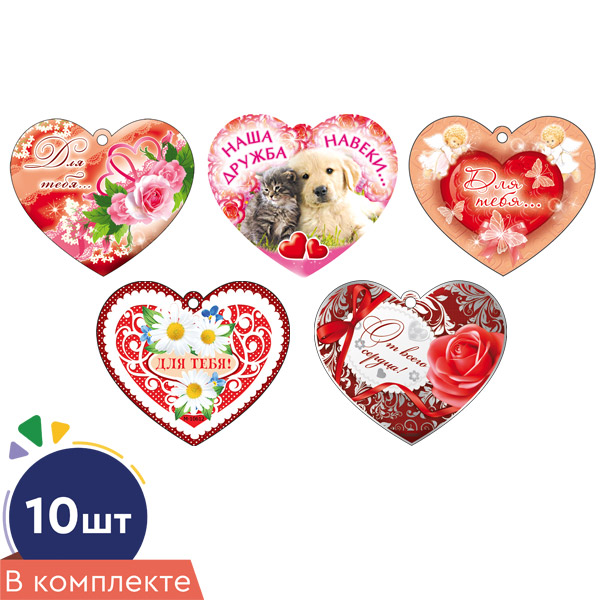 *КМ-17251 Комплект сердечек одинарных для украшения подарков (10 шт.: 5 видов по 2 шт.)