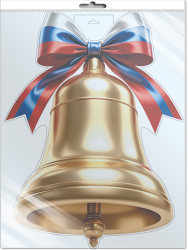 Ф-17296 Плакат вырубной А3+. Колокольчик золотой с российской символикой (двухсторонний, ВД-лак)