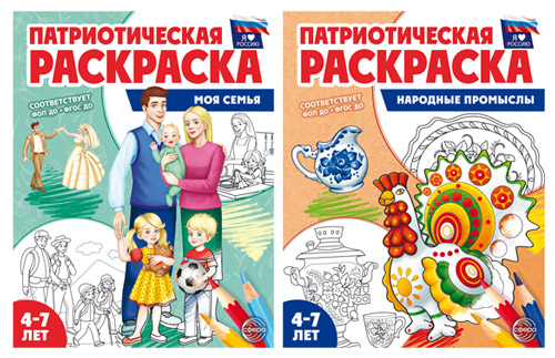 *Комплект книг. Патриотическая раскраска: Моя семья и Народные промыслы (2 раскраски, 4-7 лет)