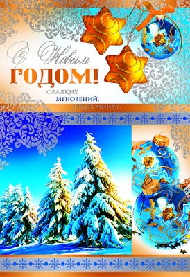 НТ-8873 Открытка среднего формата С Новым годом! Текст.(серебряная фольга)