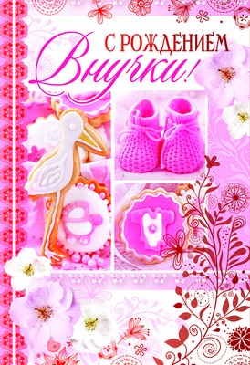 ЦР-8785 Открытка среднего формата. С рождением внучки! (текст, красная фольга)