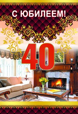 ЛН-8891 Открытки среднего формата. С Юбилеем 40! Мужская (текст, золотая фольга, конгревное тиснение)
