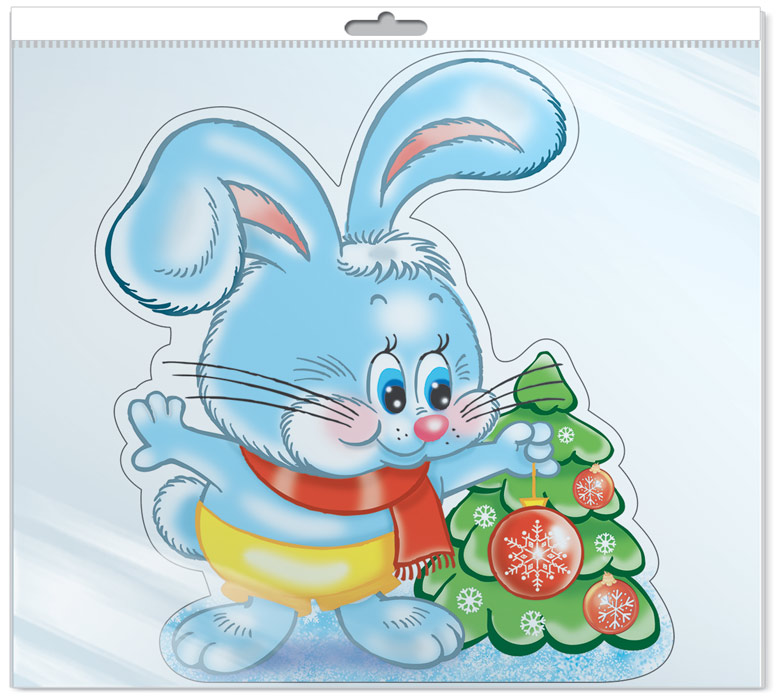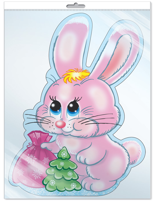*ФМ-14456 ПЛАКАТ ВЫРУБНОЙ А4 В ПАКЕТЕ. Зайчик с Новогодней елкой (УФ-лак, в индивидуальной упаковке, с европодвесом и клеевым клапаном)