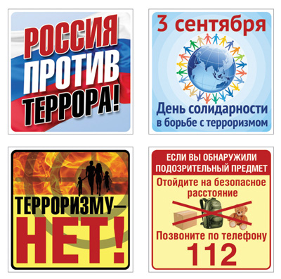 *КШН-14634 Комплект наклеек. Терроризму - нет (8 шт.: 4 вида по 2 шт.)