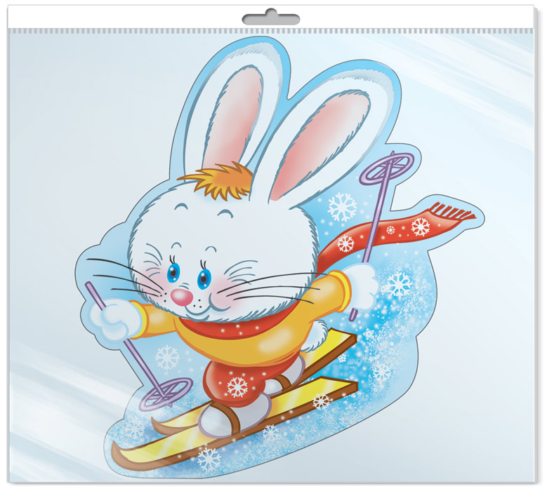 *ФМ-14458 ПЛАКАТ ВЫРУБНОЙ А4 В ПАКЕТЕ. Зайчик на лыжах (УФ-лак, в индивидуальной упаковке, с европодвесом и клеевым клапаном)