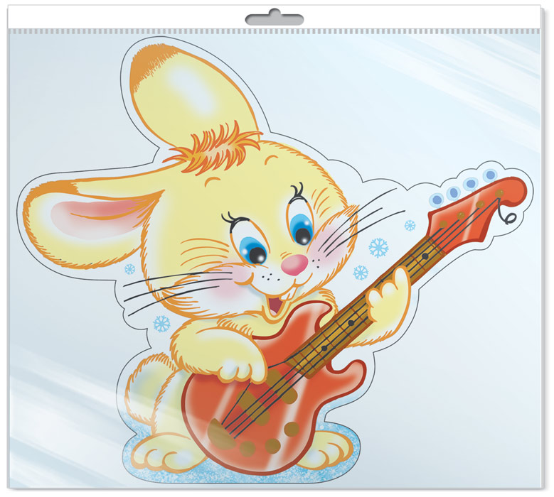 *ФМ-14461 ПЛАКАТ ВЫРУБНОЙ А4 В ПАКЕТЕ. Зайчик с гитарой (УФ-лак, в индивидуальной упаковке, с европодвесом и клеевым клапаном)