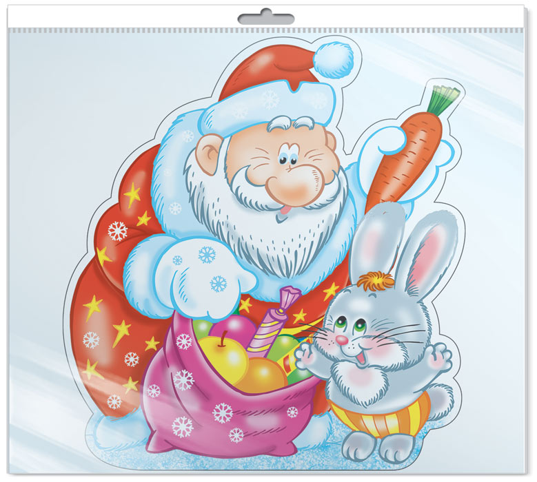 *ФМ-14460 ПЛАКАТ ВЫРУБНОЙ А4 В ПАКЕТЕ. Зайчик с Дедом Морозом (УФ-лак, в индивидуальной упаковке, с европодвесом и клеевым клапаном)