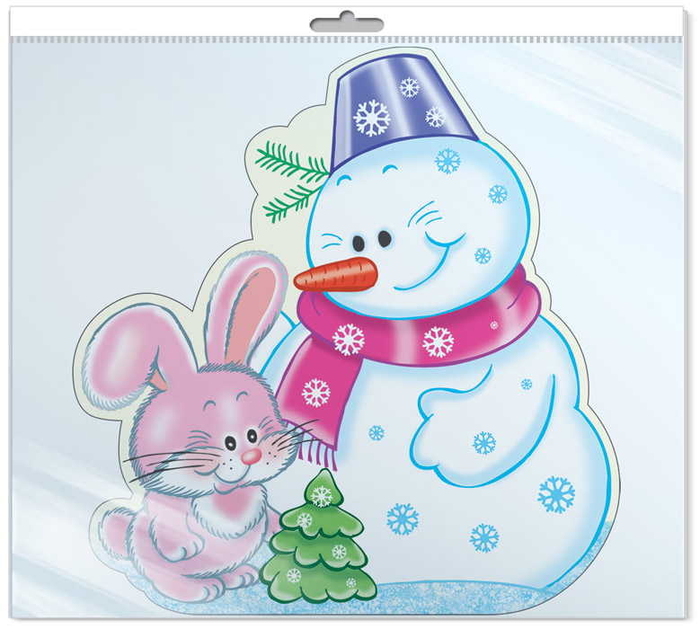 *ФМ-14457 ПЛАКАТ ВЫРУБНОЙ А4 В ПАКЕТЕ. Зайчик со снеговиком (УФ-лак, в индивидуальной упаковке, с европодвесом и клеевым клапаном)