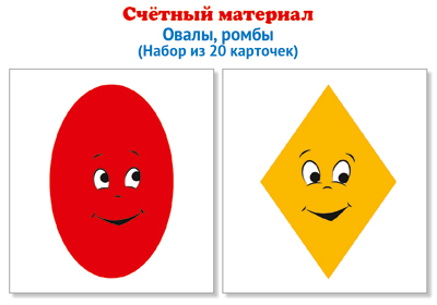 Счетный материал. Набор из 20 карточек. Ромбы, овалы
