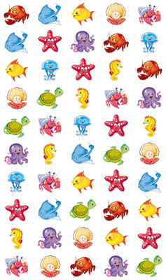 НМ-11052 Набор наклеек для поощрения. Морские обитатели (квадратные, 50 шт. на листе)