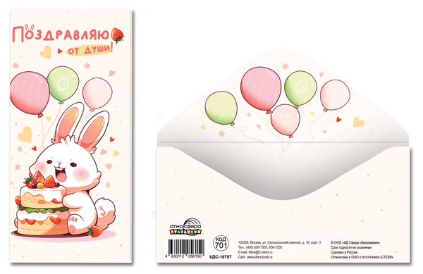 КДС-16707 Конверт для денег на склейке. Поздравляю от души! (детский, зайчик)