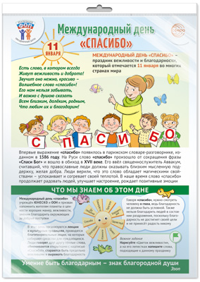 ПЛ-15762 Плакат А3. Праздничные даты по ФОП: 11 января - Международный день "спасибо"
