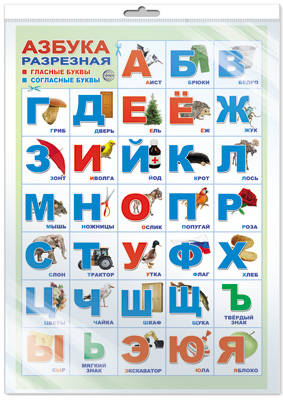 *ПЛ-16361 ПЛАКАТ А3 В ПАКЕТЕ. Азбука разрезная с картинками (в индивидуальной упаковке, с европодвесом и клеевым клапаном)