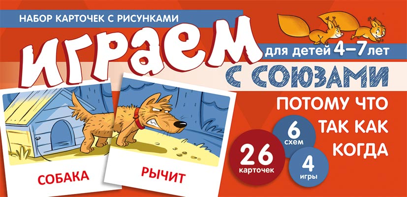 Набор карточек с рисунками. Играем с союзами. Союзы ПОТОМУ, ЧТО, ТАК КАК, КОГДА (учебно-игровой комплект)