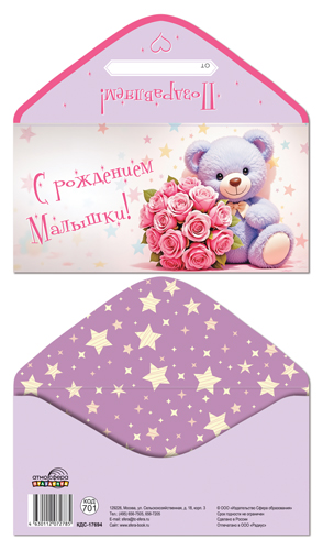 КДС-17694 Конверт для денег на склейке. С рождением малышки! (мишка с цветами)