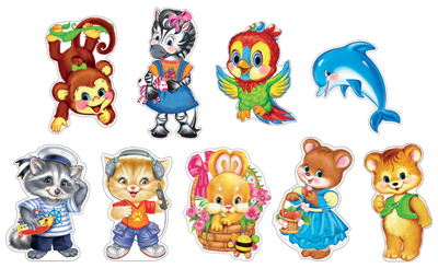 *КБ-14798 Комплект для оформления интерьера. Веселые зверята (10 штук: 5 фигур А3 и 5 фигур А4)