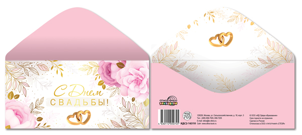КДС2-16401 Конверт для денег на склейке. Без текста (обручальные кольца, золотая фольга)