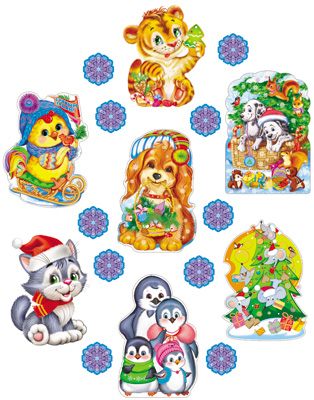 *КБ-15752 Комплект для оформления интерьера. Новогодние зверята (7 плакатов А3 и фигура по 10 шт.)