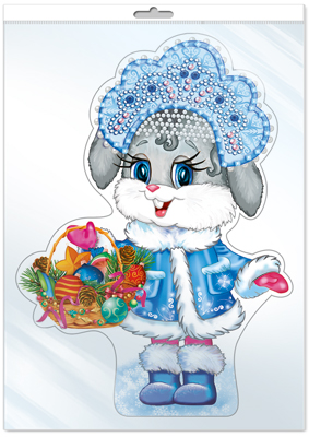 *ФМ-14450 ПЛАКАТ ВЫРУБНОЙ А4 В ПАКЕТЕ. Зайчик новогодний (УФ-лак, в индивидуальной упаковке, с европодвесом и клеевым клапаном)