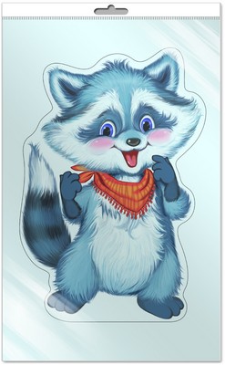 *Ф-8167 ПЛАКАТ ВЫРУБНОЙ А3 В ПАКЕТЕ. Енот (блестки, УФ-лак, в индивидуальной упаковке, с европодвесом и клеевым клапаном)