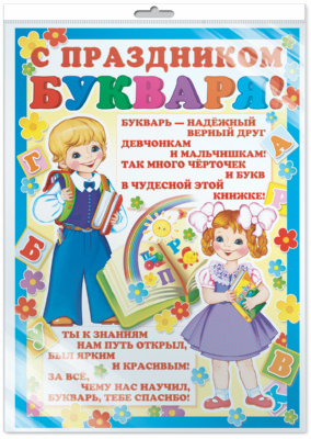 *ПЛ-8072 ПЛАКАТ А2 В ПАКЕТЕ. С Праздником Букваря! (в индивидуальной упаковке, с европодвесом и клеевым клапаном)