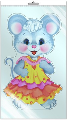 *Ф-7998 ПЛАКАТ ВЫРУБНОЙ А3 В ПАКЕТЕ. Мышонок блестки, в индивидуальной упаковке, с европодвесом и клеевым клапаном)