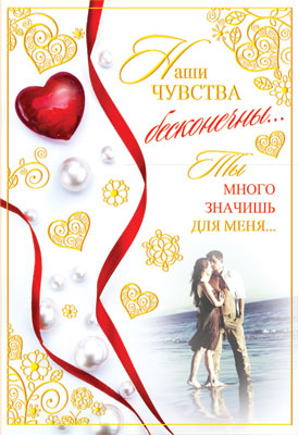 Ц-7243 Открытка среднего формата. Наши чувства бесконечны... (текст, золотая фольга, конгревное тиснение)