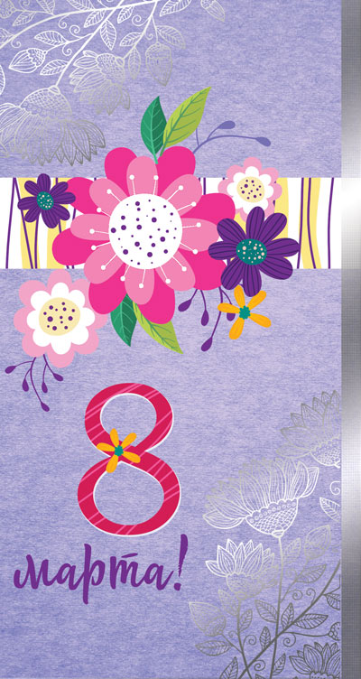 ЦВ-13549 Открытка евроформата. 8 марта! (Серебряная фольга) без текста