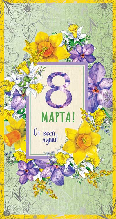 ЦВ-13552 Открытка евроформата. 8 марта! От всей души! (Серебряная фольга) (без текста)