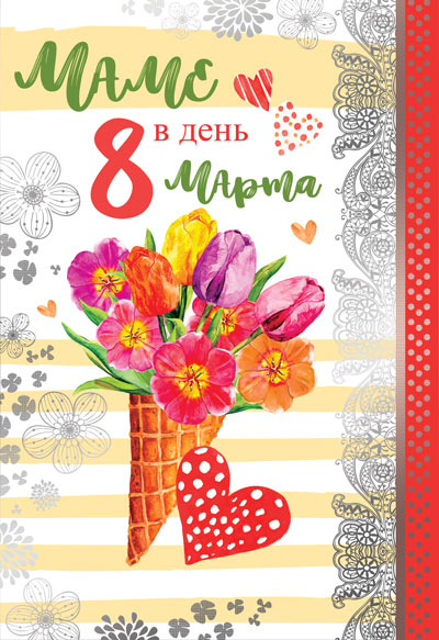ЦВ-13559 Открытка среднего формата. Маме в день 8 марта (серебряная фольга)