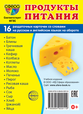 Дем. картинки СУПЕР Продукты питания. 16 раздаточных карточек с текстом на обороте (учебно-методическое пособие с комплектом демонстрационного материала 63х87 мм, познавательное и речевое развитие)