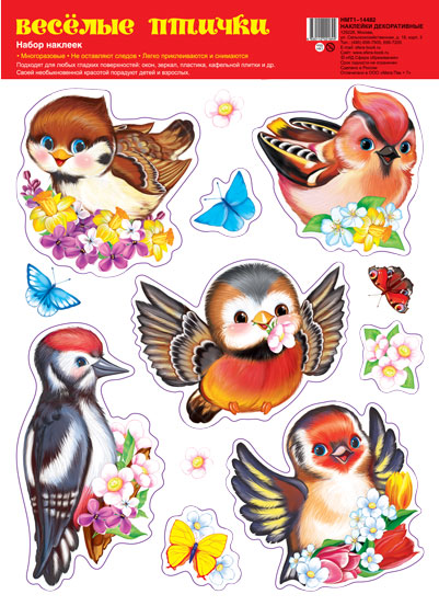 НМТ1-14482 Набор наклеек А4+. Веселые птички (УФ-лак)