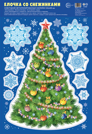 Н-15357 Новогодние наклейки А3+. Елочка со снежинками (серебряная металлизация, многоразовые)