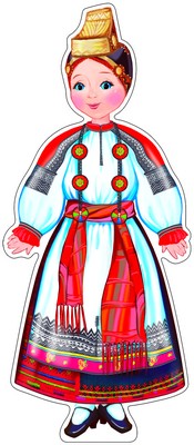 Ф-9606 Плакат вырубной А3. Девочка в южнорусском костюме (с блестками в лаке) - группа Костюмы