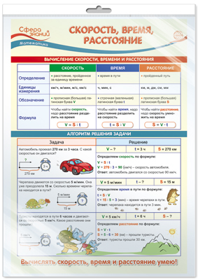 *ПО-14352 ПЛАКАТ А3 В ПАКЕТЕ. Математика в 4 классе. Скорость, время, расстояние (в индивидуальной упаковке, с европодвесом и клеевым клапаном)