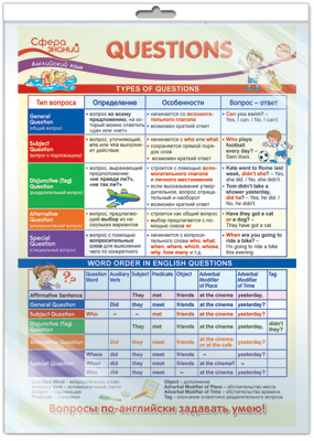 *ПО-14467 ПЛАКАТ А3 В ПАКЕТЕ. Английский язык в 4 классе. Questions (Вопросы, в индивидуальной упаковке, с европодвесом и клеевым клапаном)