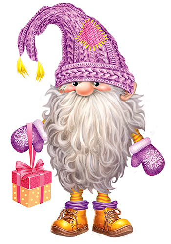 М-16593 Вырубная фигурка. Гномик с подарком (двухсторонняя, ВД-лак)