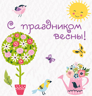 М-14375 Мини-открытка двойная. С праздником весны! (УФ-лак)
