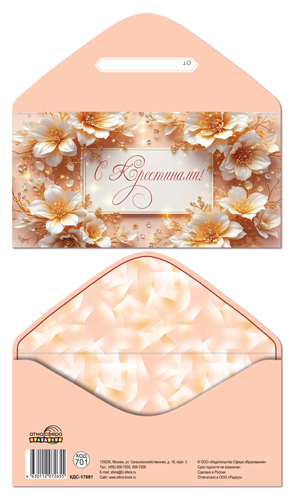 КДС-17681 Конверт для денег на склейке. С крестинами! (цветы)