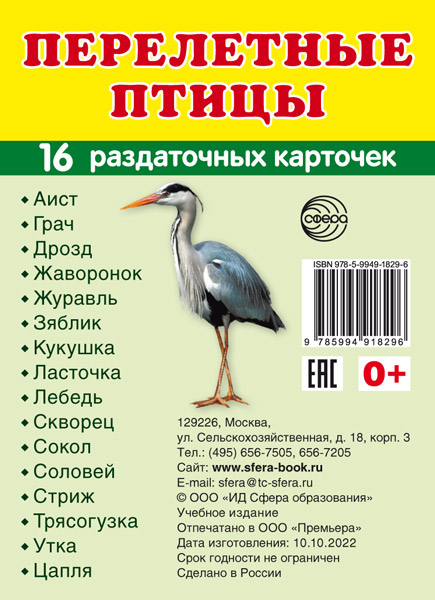 Дем. картинки СУПЕР Перелетные птицы.16 раздаточных карточек с текстом на обороте (учебно-методическое пособие с комплектом демонстрационного материала 63х87 мм, познавательное и речевое развитие)