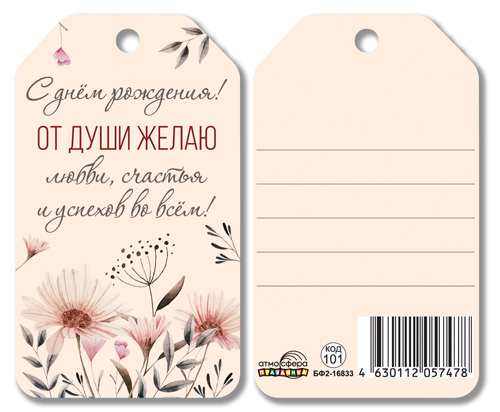 БФ2-16833 Бирка. С днем рождения! От души желаю любви, счастья и успехов во всем!