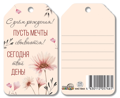 БФ2-16832 Бирка. С днем рождения! Пусть мечты сбываются! Сегодня твой день!
