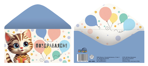 КДС-16802 Конверт для денег на склейке. Поздравляем! (детский, котенок)