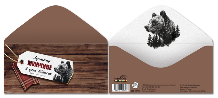 КДС-16719 Конверт для денег на склейке. Лучшему мужчине в день Юбилея! (мужской, медведь)
