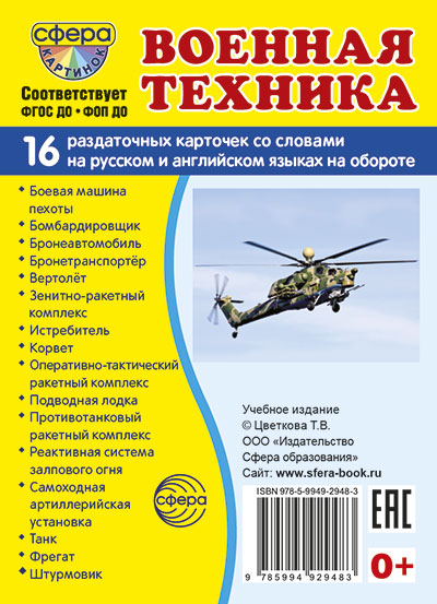 Дем. картинки СУПЕР Военная техника. 16 демонстрационных картинок с текстом на обороте (учебно-методическое пособие с комплектом демонстрационного материала 173х220 мм, познавательное и речевое развитие)