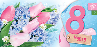 М-15687 Мини-открытка двойная. 8 марта (уф-лак)