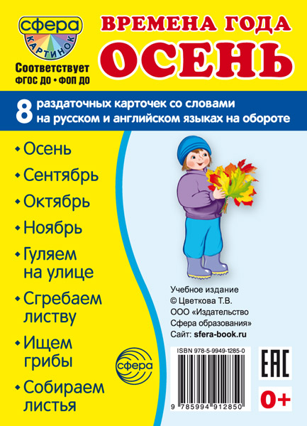 Дем. картинки СУПЕР Времена года. Осень: 8 раздаточных карточек с текстом на обороте (учебно-методическое пособие с комплектом демонстрационного материала 63х87 мм, познавательное и речевое развитие)