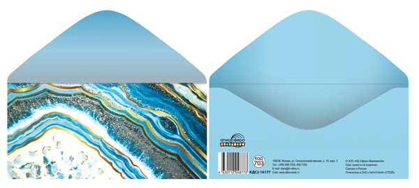 КДС2-16177 Конверт для денег на склейке. Без надписи (золотая фольга, унисекс, срез камня)