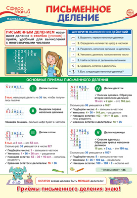 *ПО-14348 ПЛАКАТ А3 В ПАКЕТЕ. Математика в 4 классе. Письменное деление (в индивидуальной упаковке, с европодвесом и клеевым клапаном)